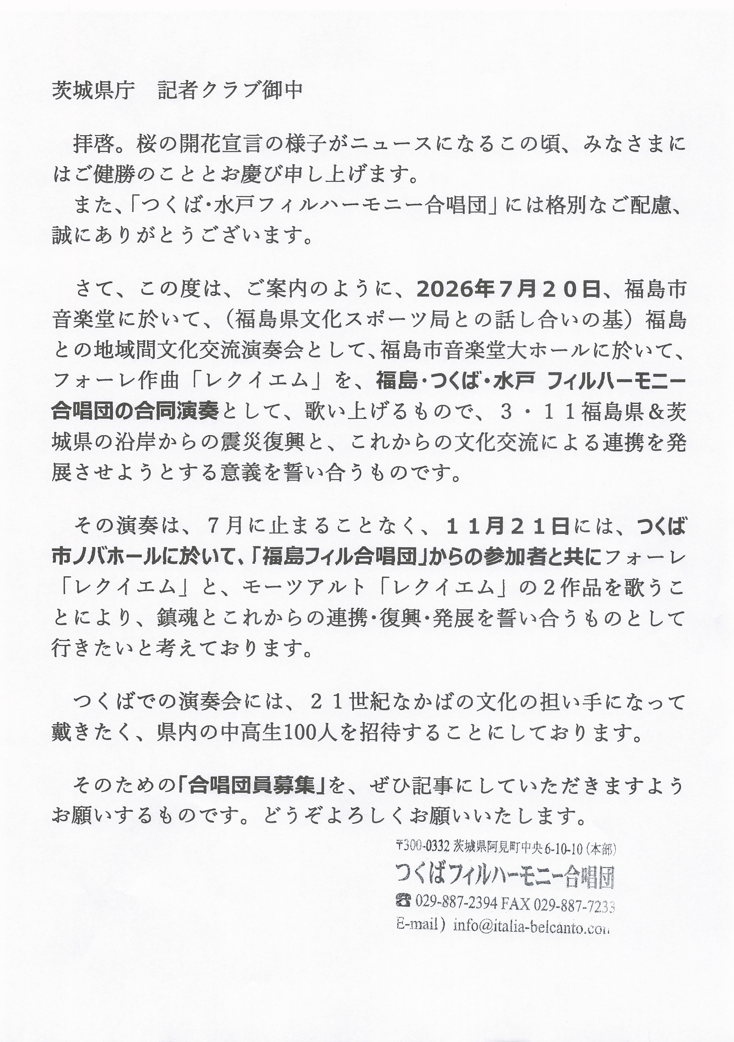 【次世代応援】地域間文化交流演奏会へ中高生100名を無料招待